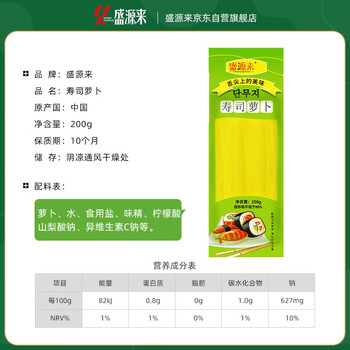 盛源来寿司萝卜200g*2袋 【赠送虾怪酱1袋或者寿司萝卜1袋】