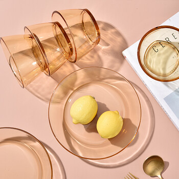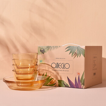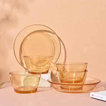 爱尚果兹拾光餐具套装ASGZ-A04耐热高硼硅玻璃碗碟家用3-4人琥珀色6件组