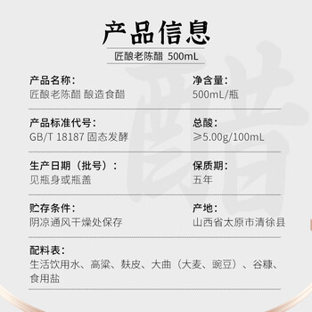 紫林 醋 5度匠酿老陈醋500ml 6年陈酿 0添加防腐剂 纯粮酿造 山西特产