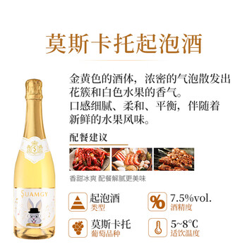 圣芝(suamgy)莫斯卡托高泡起泡酒甜白葡萄酒750ml 单瓶装 法国原瓶进口
