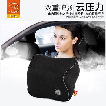 GiGi吉吉汽车头枕 GT-1327竹炭记忆棉行车枕 车用护颈枕 头靠枕黑色