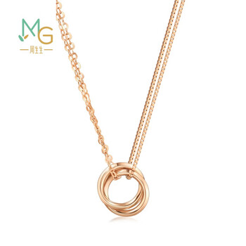 周生生永系列双环18K玫瑰金项链环环相扣吊坠91873U47厘米