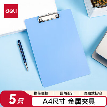 得力(deli)【超级爆款】5只装A4书写板夹 文件夹写字板金属强力夹塑料合同标书办公用品蓝色 PE108-J5