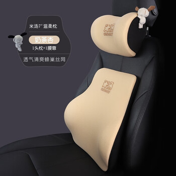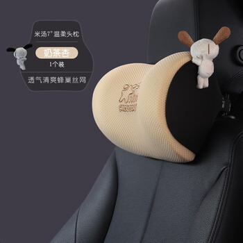 爱车屋 ICAROOM 汽车头枕 太空记忆棉护颈靠枕四季通用车枕头 T-663MS-X 奶茶杏