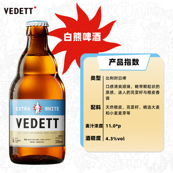 白熊白啤比利时风味精酿啤酒330ml*24瓶整箱京东自营年货高端送礼聚会