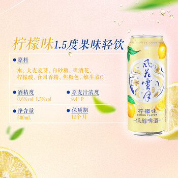风花雪月柠檬味低醇果味啤酒500ml*12罐京东自营 果啤整箱踏青出游
