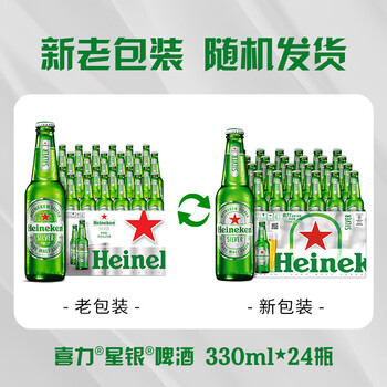 喜力星银啤酒 顺滑爽口 330ml*24瓶整箱装 喜宴礼酒踏春送礼