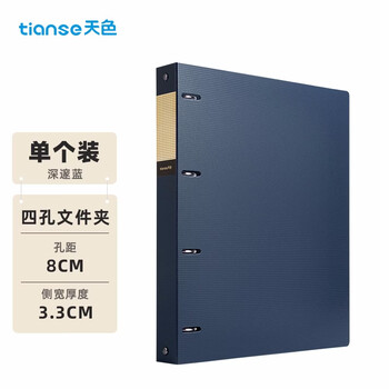 天色四孔文件夹打孔a4活页夹插页资料册多功能办公室收纳神器 彩色穿孔大容量加厚强力夹TS-1615深邃蓝