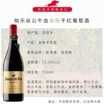 桃乐丝Torres公牛血金标干红葡萄酒 750ml*1