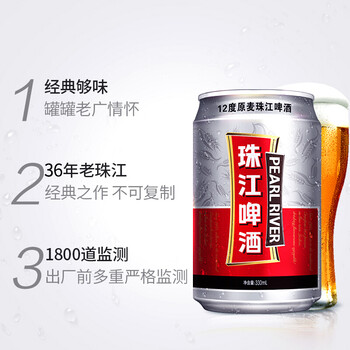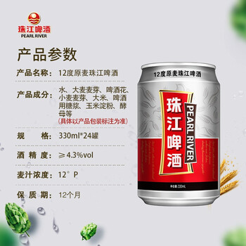 珠江啤酒(PEARL RIVER)12度 珠江原麦啤酒 330ml*24听 整箱装 京东自营踏春送礼