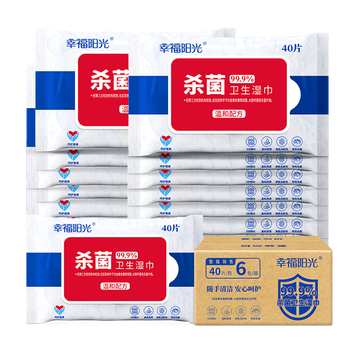 幸福阳光 湿巾纸巾 杀菌洁肤卫生湿巾 40片*6包装 杀灭细菌率达99.9%