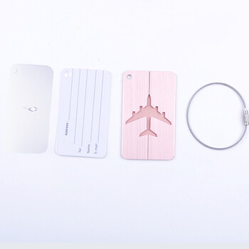 班哲尼 旅行箱铝合金行李牌 金属登机牌旅行箱托运牌拉杆箱标识牌 含手写卡纸 飞机拉丝玫瑰金