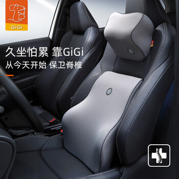 GiGi汽车头枕腰靠套装记忆棉车用护颈枕护腰垫座椅靠枕车载靠垫灰色