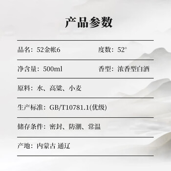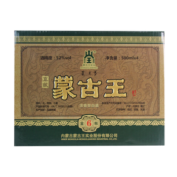 蒙古王 白酒 浓香型纯粮食酒 高度白酒礼盒整箱装 52度金帐6 500ml*4
