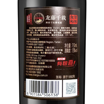 张裕旗下龙藤名珠 特级精选西拉干红葡萄酒750ml*6整箱 自营红酒