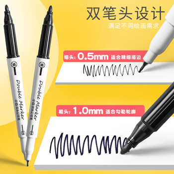 晨光文具记号笔小双头油性记号笔小头细头马克笔勾线笔儿童绘画学生用美术生专用白杆 APM29301红色 12支装