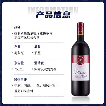 拉菲传奇珍藏梅多克法定产区波尔多干红葡萄酒750ml*6 红酒