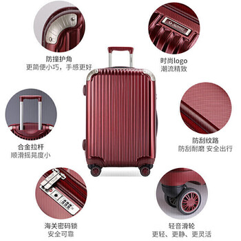 莎米特行李箱小型大容量拉杆箱女时尚可登机旅行箱20英寸PC338T4 酒红
