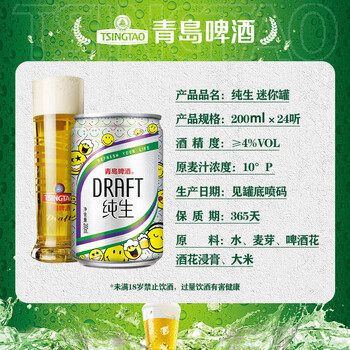 青岛啤酒(TsingTao)纯生啤酒 原麦汁浓度10°P 200ml*24听 整箱批发24瓶踏春送礼