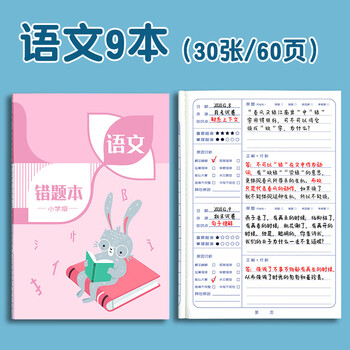 法拉蒙(faramon)9本装错题本小学生纠错改错整理本数学语文英语通用加厚课本配套订正错题作业本 语文9本装