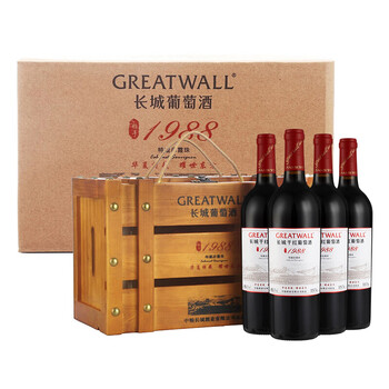 长城(GreatWall)红酒 耀世东方 特藏1988 高级赤霞珠干红葡萄酒 木箱装 750ml*4瓶*1箱