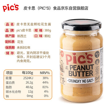 皮卡思不添加盐颗粒花生酱380g