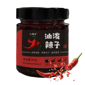 小爆告 油泼辣子203g瓶装陕西特产秦椒夹馍拌饭拌菜香辣酱辣椒油调味料