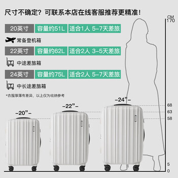 莎米特大容量行李箱女22英寸拉杆箱男万向轮旅行箱可扩容PC154T4A米白