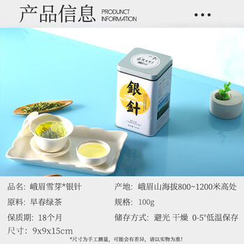峨眉雪芽银针绿茶 茶叶四川峨眉山茶高山春茶嫩芽茗茶100g