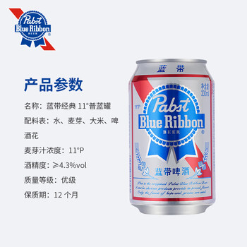 蓝带(Blue Ribbon)普啤 11度330ml*24听整箱装精酿鲜啤酒