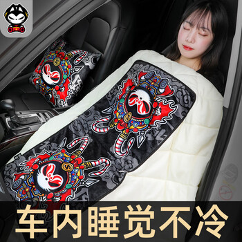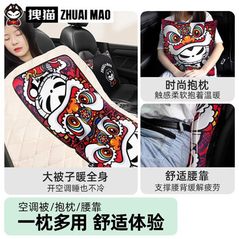 拽猫国潮风汽车抱枕被子两用二合一车载睡觉神器加厚冬天车内腰靠京剧