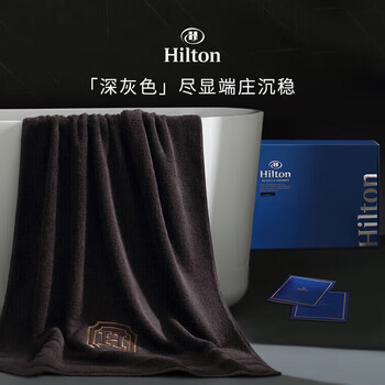 希尔顿酒店浴巾 纯棉A类加大加厚 男女成人浴巾礼盒 深灰150*80cm