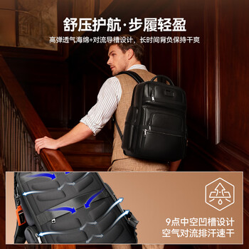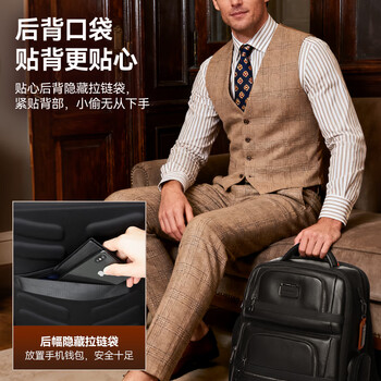博牌双肩包头层牛皮背包男士商务16英寸电脑包大学生书包节日礼物