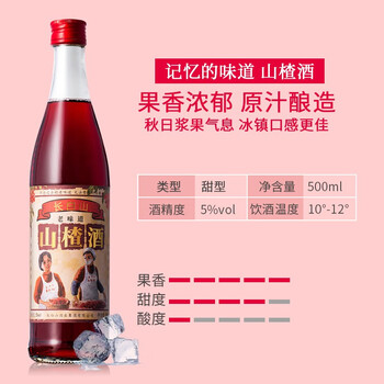 长白山水果酒山楂酒老味道5度低度酒微醺果酒小甜酒特产500ml*6瓶整箱