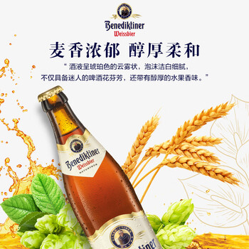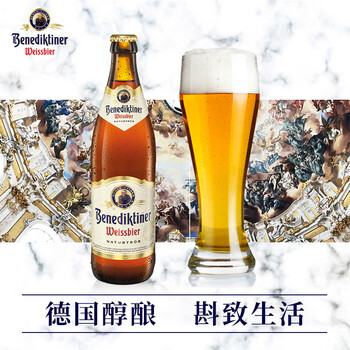 百帝王(Benediktiner)【送礼自饮】修道院小麦白啤 酒500ml*12瓶 整箱装 德国进口原装
