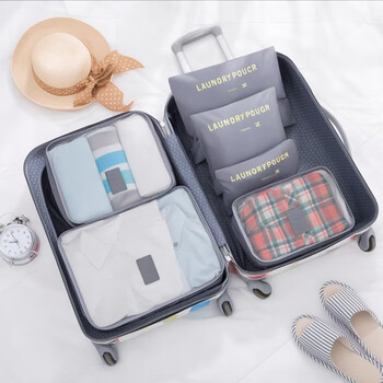 欣沁 洗漱收纳套装洗漱收纳袋李箱衣物整理袋收纳包6件套装 灰色