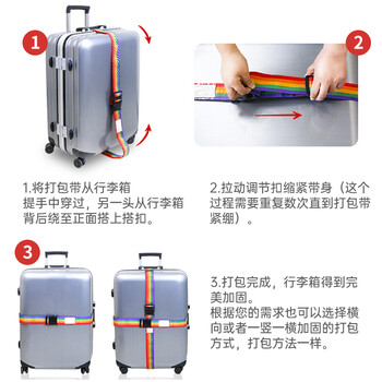 班哲尼一字打包带出国托运拉杆箱捆绑带扎带行李箱托运打包带旅行安全捆箱带含行李书写牌彩虹色