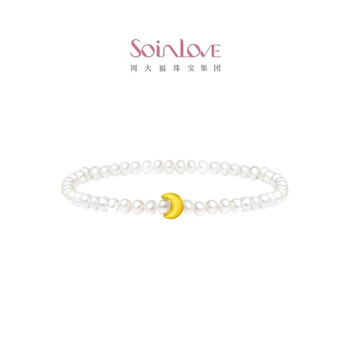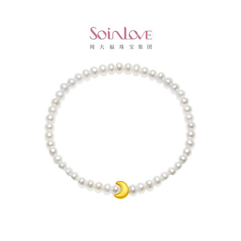 周大福SOINLOVE 宝藏女孩系列 月亮黄金珍珠手链女 VR1002生日礼物