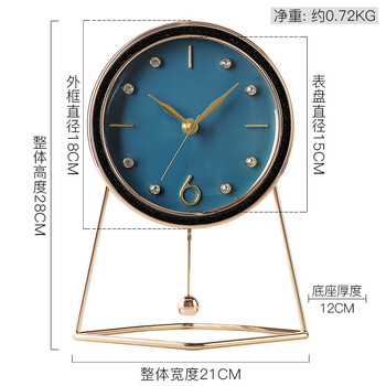 汉时(Hense)创意台钟时尚现代艺术时钟摆件客厅桌面座钟坐式台式石英钟HD56蓝