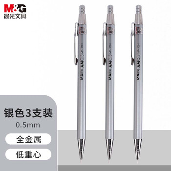 晨光(M&G)文具0.5mm金属活动铅笔套装 考试绘图自动铅笔 低重心防断芯 银色 三支装1001I
