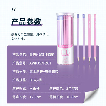 晨光(M&G)文具HB彩杆六角木杆铅笔 素描绘图学生书写铅笔 50支/筒 紫粉色 AWP357F2C1