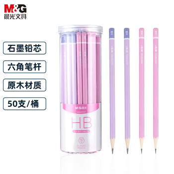 晨光(M&G)(M&G)文具HB铅笔彩杆50支 六角木杆铅笔 学生开学书写美术素描绘图木质铅笔 紫粉色AWP357F2C1
