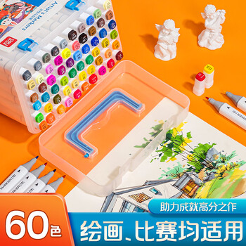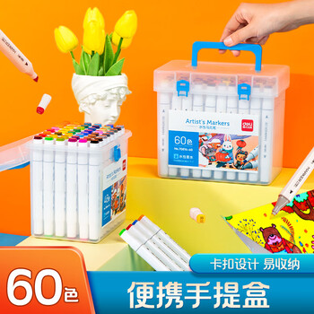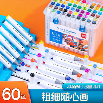 得力(deli)水性马克笔60色双头速干方杆大容量学生元旦树水彩笔荧光笔男孩女孩绘画涂色水彩勾线礼物美育