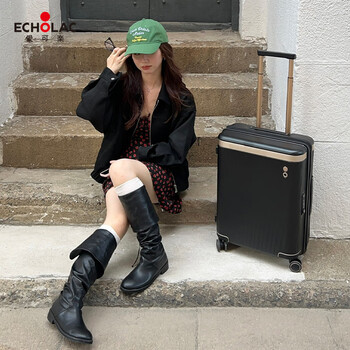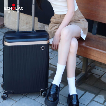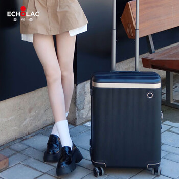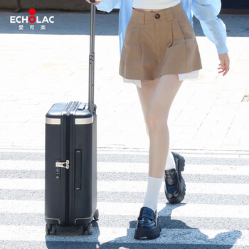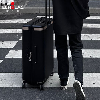 爱可乐(Echolac)明星同款大容量行李箱出国旅行箱王朝防刮拉杆箱黑色24吋PC142