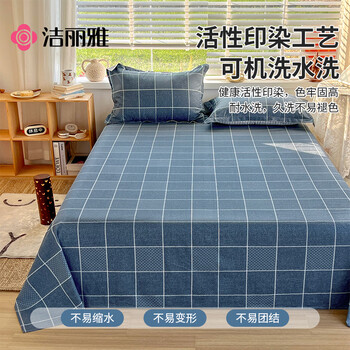 洁丽雅(Grace)A类抗菌全棉床单100%纯棉学生单人被单床罩1.2米床 蓝调160*230cm