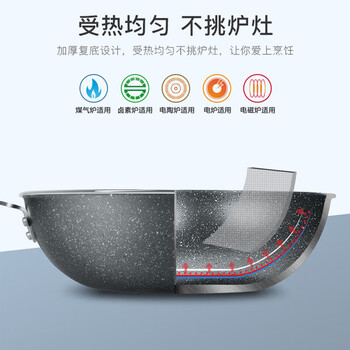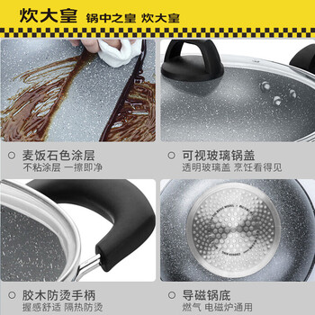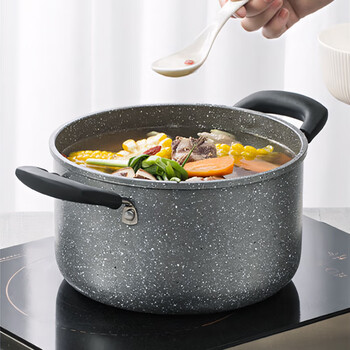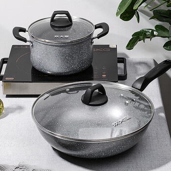 炊大皇锅具套装不粘锅炒锅汤锅两件套麦饭石色电磁炉通用石味TZ02SW