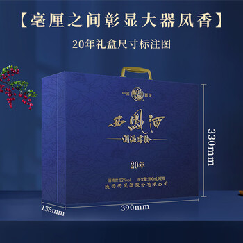 西凤酒海窖龄 20年蓝臻礼盒 52度凤香型白酒 500ml*2瓶 商务送礼收藏