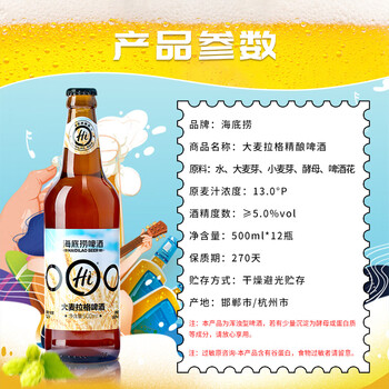海底捞大麦拉格 精酿啤酒 500ml*12瓶 整箱装 国产踏春送礼