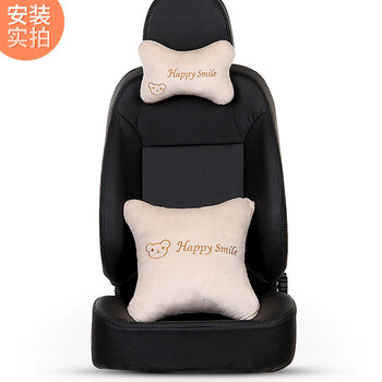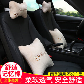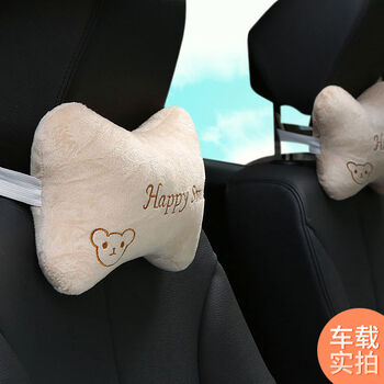 华饰汽车头枕颈枕车载头枕车用座椅靠枕护颈枕 刺绣款【小熊米色】