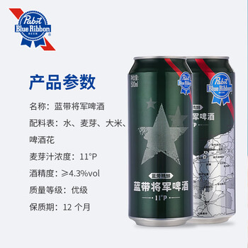 蓝带将军精酿啤酒11度淡色艾尔 美式IPA琥珀色酒液500ml*12罐 整箱装